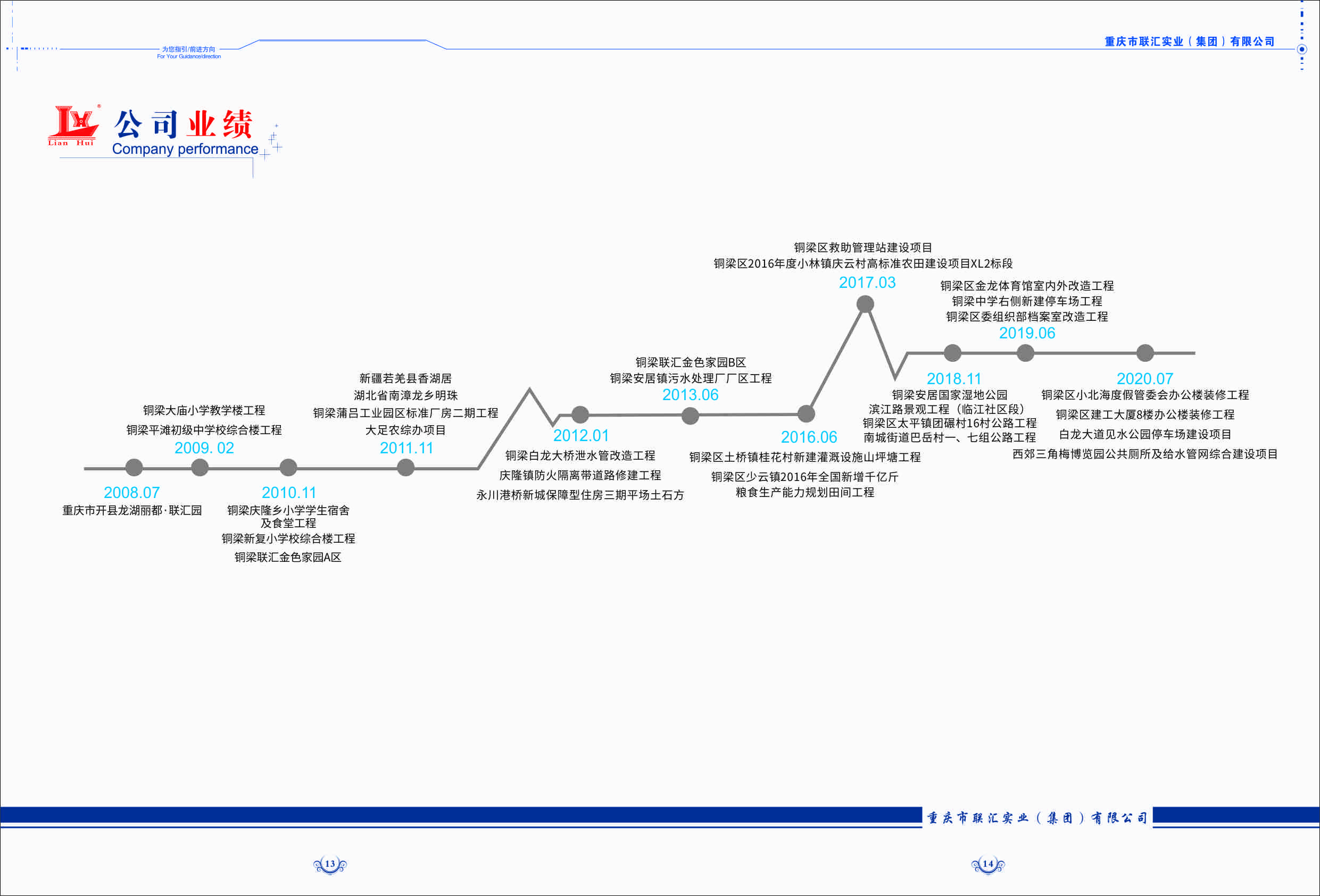 集团前身为“铜梁县铜郭预制构件厂”,前后经历了三十年的艰苦创业和积累。适逢重庆设立直辖市之际,集团公司与时俱进,为扩大经营规模、拓展业务、提高公司的信誉度,特向政府部门申请新增了多项专业资质。集团公司在区委、区府和市、区城乡建委的领导下,始终本着“质量第一,信誉至上”的基本原则,立足于重庆,向外拓展,开发建设的足迹已达湖北、新疆等地,圆满完成了按资质要求的房地产开发项目、各类建筑项目和生态农业发展。