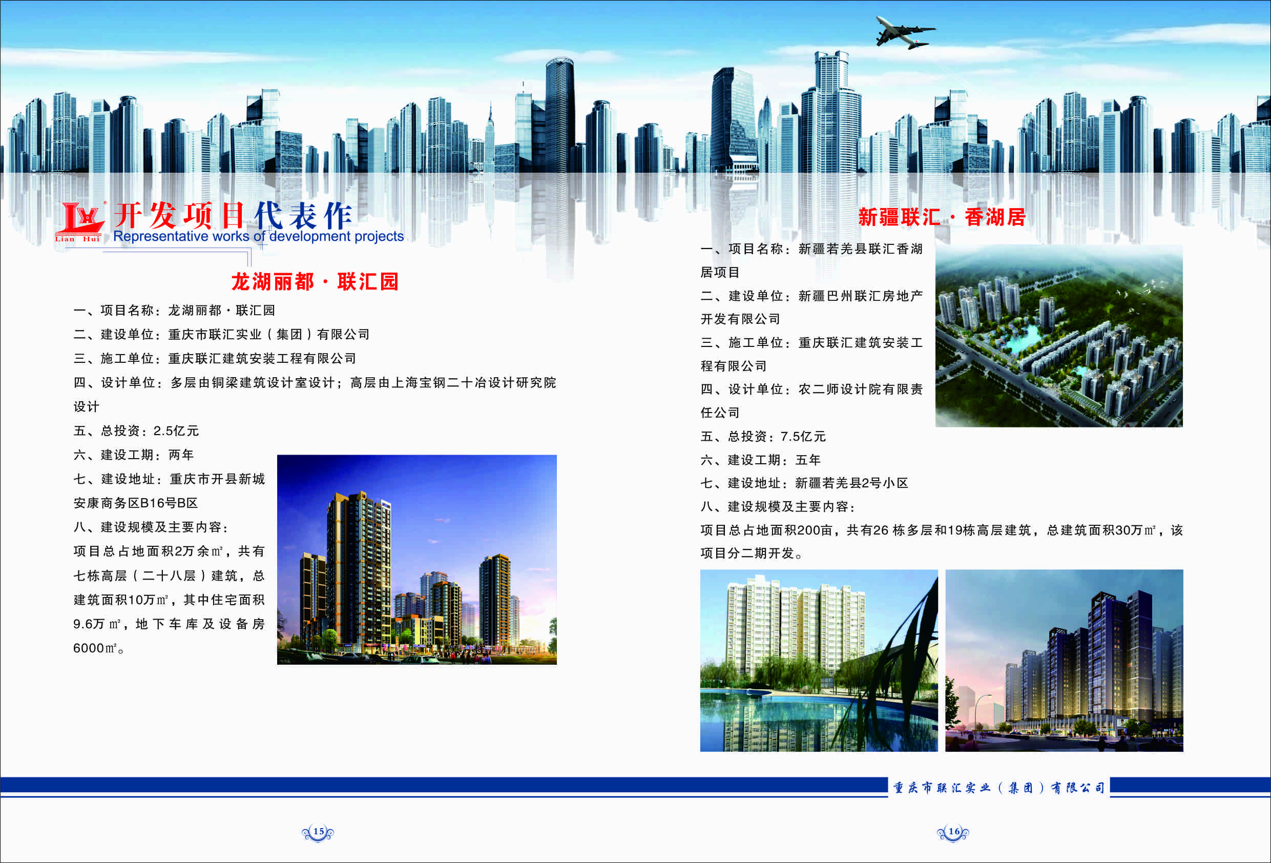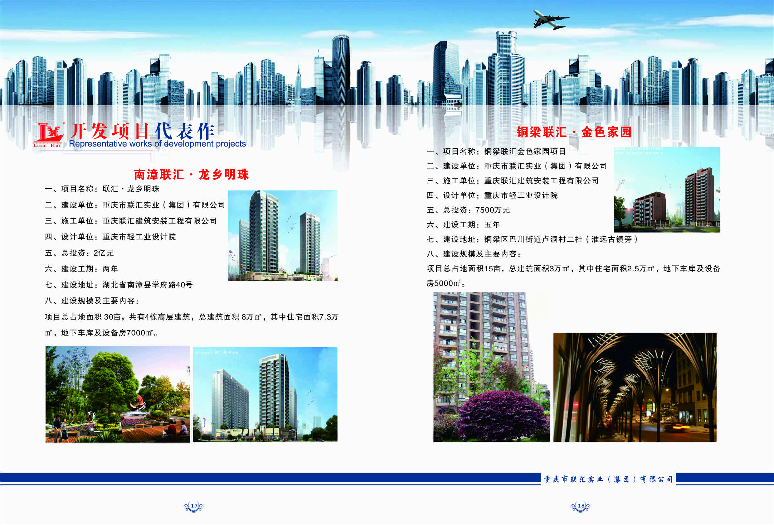 OO二年九月,是一家集房地产开发、建筑工程总承包、装饰工程总承包、生态农业发展和物业管理的综合性民营企业,总部设于重庆市铜梁区东城街道办事处迎宾路402号建工大厦,公司办公场所约3000㎡,现有固定资产1亿元,注册资本5000万元,大小机械设备96台。下属公司包括重庆联汇建筑安装工程有限公司、重庆市联汇物业管理有限公司、重庆联汇生态农业发展有限公司。